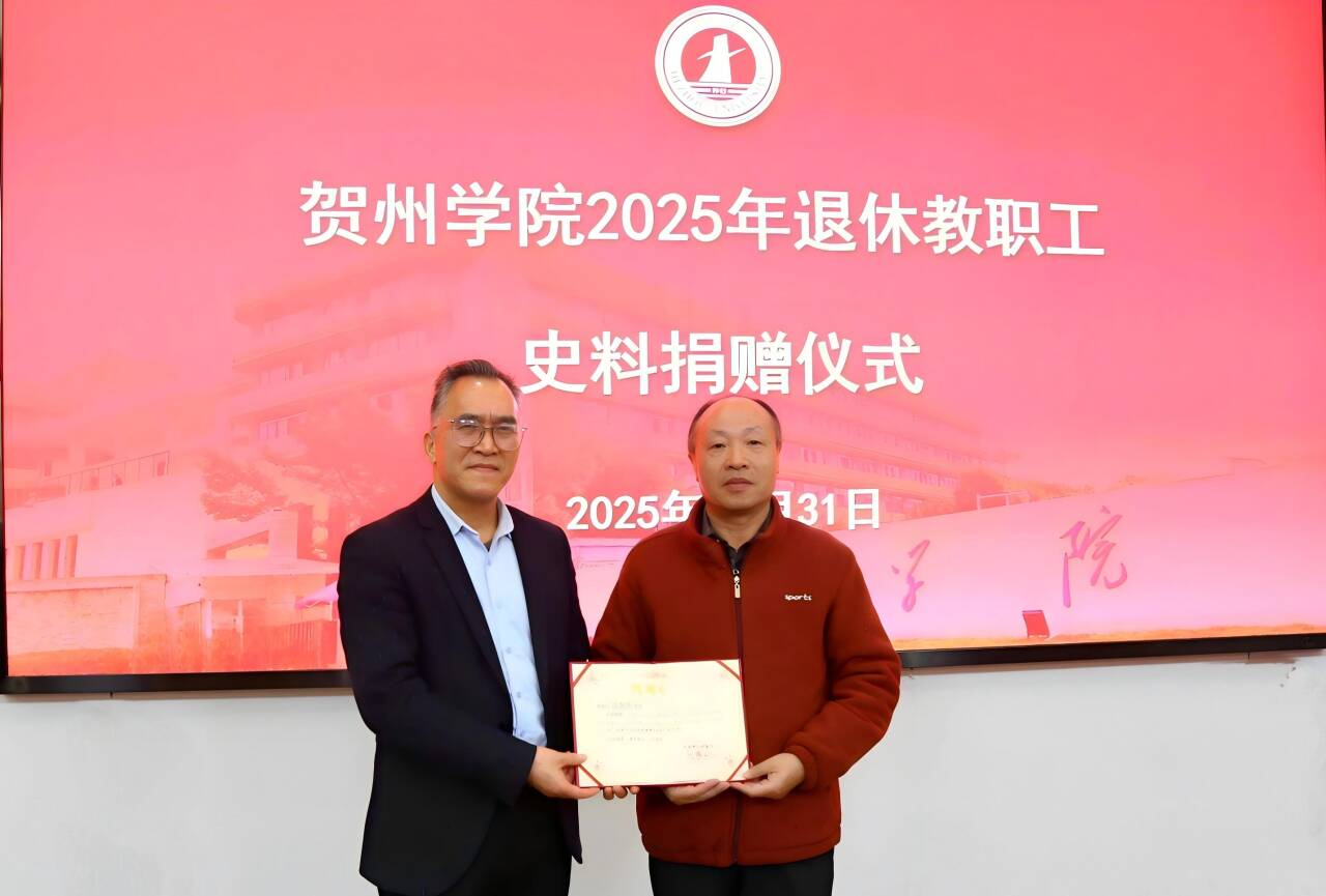 12月31日,在2025年教职工荣退仪式上,段振华、韦浩明、黄兆权三位退休教职工向校档案馆无偿捐赠珍贵史料,为丰富学校档案馆藏、传承校园文化添砖加瓦。